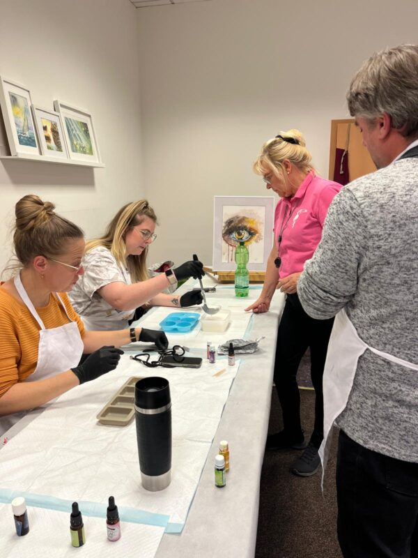 Mit viel Freude und Kreativität zeigten sich die Lehrerinnen und Lehrer als wahre Seifenkünstler. Es wurde gegossen, gelegt, gestaltet und gelegt- echte kleine Kunstwerke entstanden. Und so mancher hatte dann schon mal ein tolles Weihnachtsgeschenk selbst fabriziert.